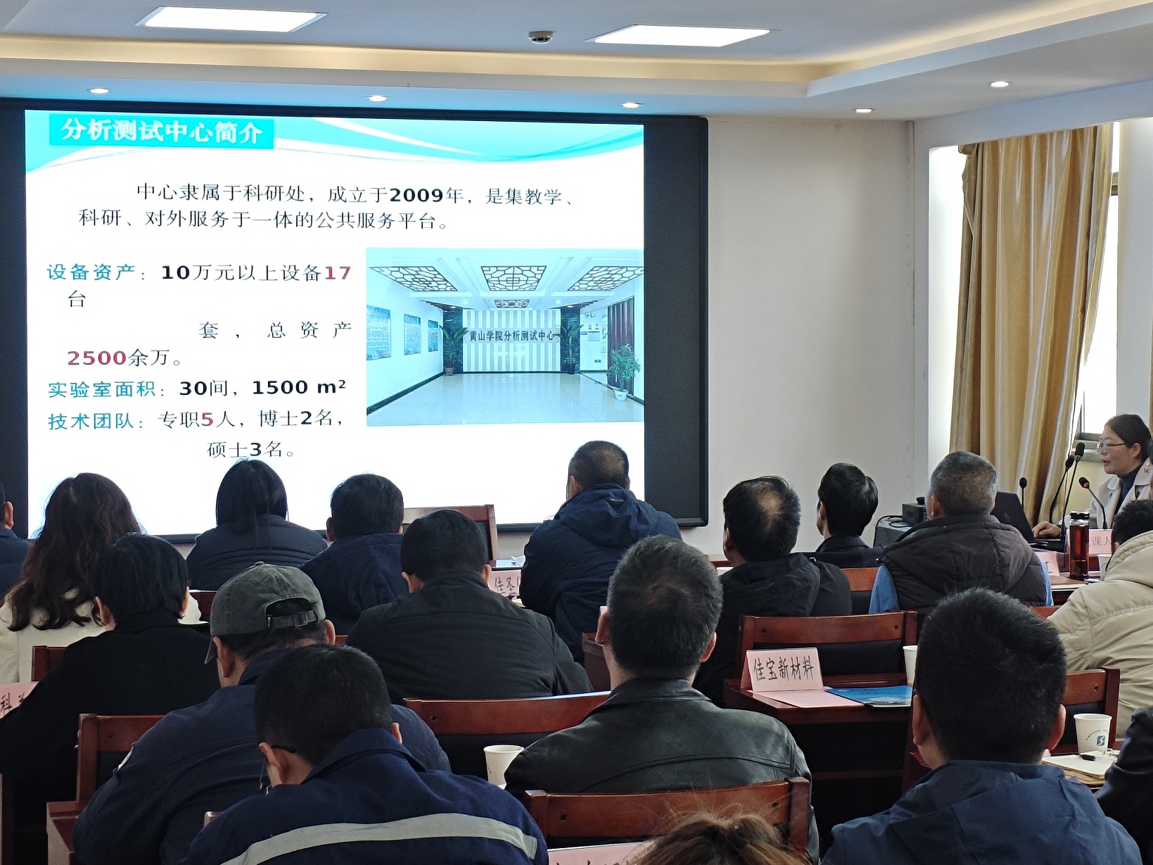 作为黄山市产业转型升级的前沿阵地,歙县化工园区内企业对高精度分析测试的需求与日俱增,然而“检测难、周期长、成本高”的现实难题一度成为制约发展的瓶颈。此次宣讲中,技术团队围绕中心仪器设备资源、技术服务能力及典型应用案例进行了系统推介,并现场为企业“把脉问诊”,解答技术疑惑。此举不仅标志着我校仪器设备开放共享水平迈入新阶段,更通过精准对接,为园区企业破解检测困境提供了切实可行的分析测试技术路径。